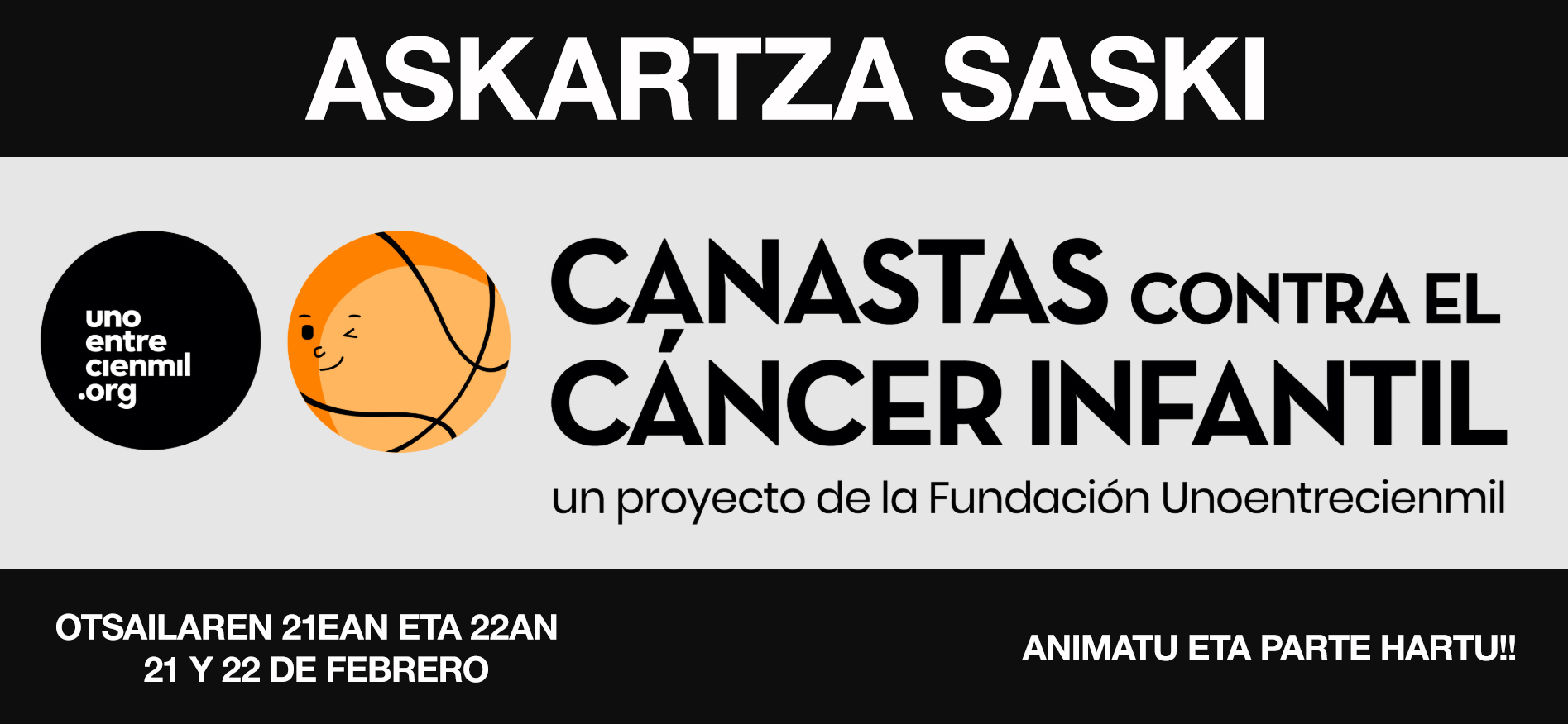 El club Askartza Saski se ha unido a la iniciativa solidaria Unoentrecienmil, participando en la campaña Canastas Contra el Cáncer Infantil, que se celebrará el fin de semana del 21 y 22 de febrero.