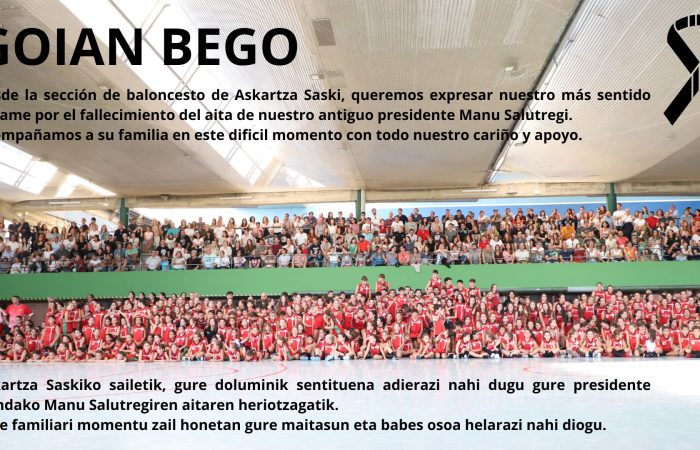 Desde la sección de baloncesto de Askartza Saski, queremos expresar nuestro más sentido pésame por el fallecimiento del aita de nuestro antiguo...Ver más